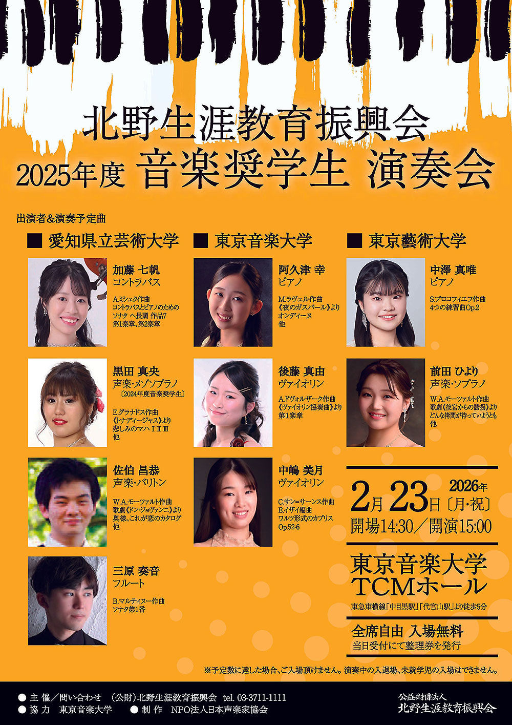 演奏会: 北野生涯教育振興会 2025年度音楽奨学生演奏会
